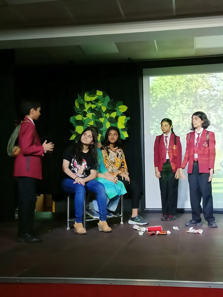 Environmental awareness took center stage with skits and dances promoting themes like “Save Earth – The Warning Across Time: A Guide to Save Earth.” Creative collages, charts on sustainable development, and artifacts crafted from waste materials reflected students’ commitment to sustainability.